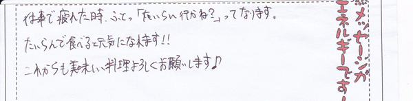これからも美味しい料理よろしくお願いします♪