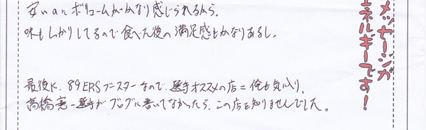 最後に89ERSブースターなので、選手オススメの店=俺も気に入り。
