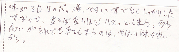 味が3Dなのだ。薄っぺらい味でなくしっかりした味なので、食えば食うほどハマってしまう。多少高いがそれでも来てしまうのは、やはり味が良いから。