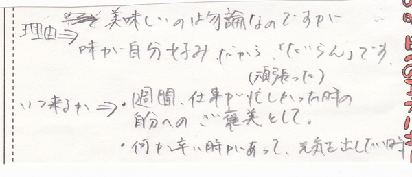 理由⇒美味しいのはもちろんなのですが、味が自分好みだから「たいらん」です。