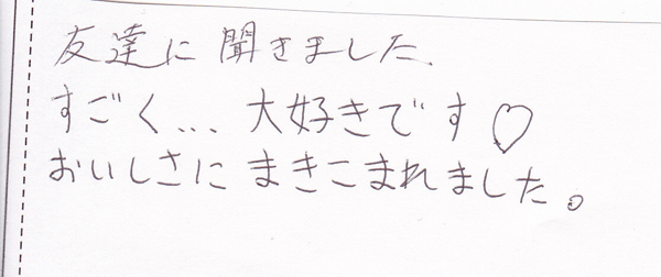 食べてくれたお客様からの嬉しい感想をたくさんいただきました。その一部をご紹介いたします。