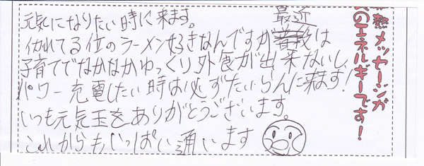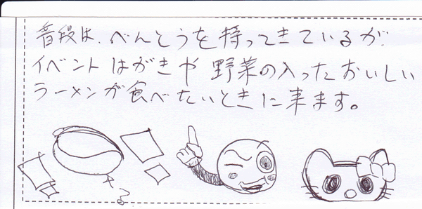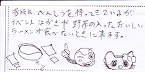 普段はべんとうを持ってきているが、イベントはがきや野菜の入ったおいしいラーメンが食べたいときに来ます。