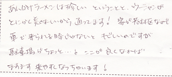これからも頑張って美味しいラーメン作ってください(^O^)