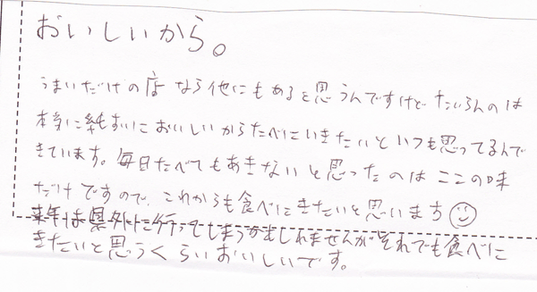 来年は県外に行ってしまうかもしれませんが、それでも食べにきたいと思うくらいおいしいです。