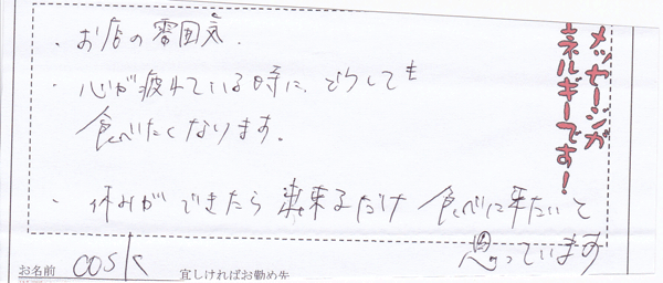 食べてくれたお客様からの嬉しい感想をたくさんいただきました。その一部をご紹介いたします。
