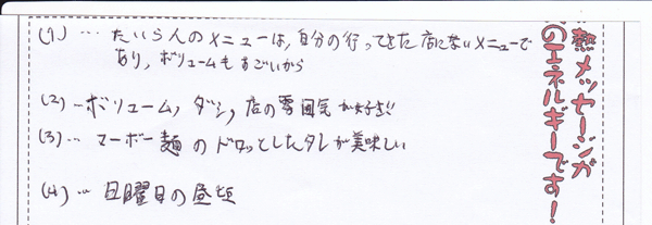 (2)…ボリューム、ダシ、店の雰囲気が好き