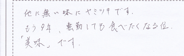 もう9年、転勤しても食べたくなる位、「美味」です。 |