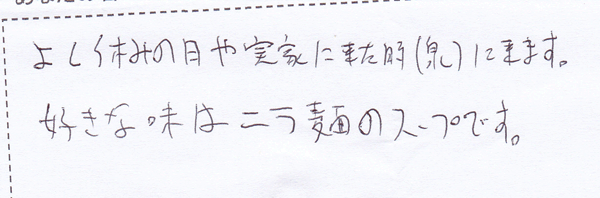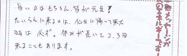 たいらんに来るのは、仙台に帰って来た時は必ず。休みが長いと2、3回来ることもあります。 |