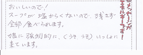 食べてくれたお客様からの嬉しい感想をたくさんいただきました。その一部をご紹介いたします。